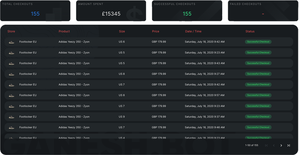 With over 650,000 successful checkouts and one of the smallest communities, GaneshBot offers unrivalled success per user. (*as of 29th Dec 2020)